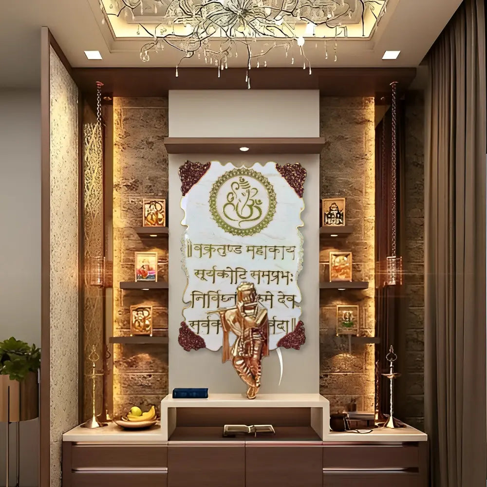 Meticulously crafted using premium-quality resin, this spiritual wall frame is adorned with gold-accented borders, reflecting a blend of traditional Vastu energy and contemporary art aesthetics. Perfect for pooja rooms, meditation corners, or even as a centerpiece in your living area, this Ganesha mantra frame radiates peace and positivity.