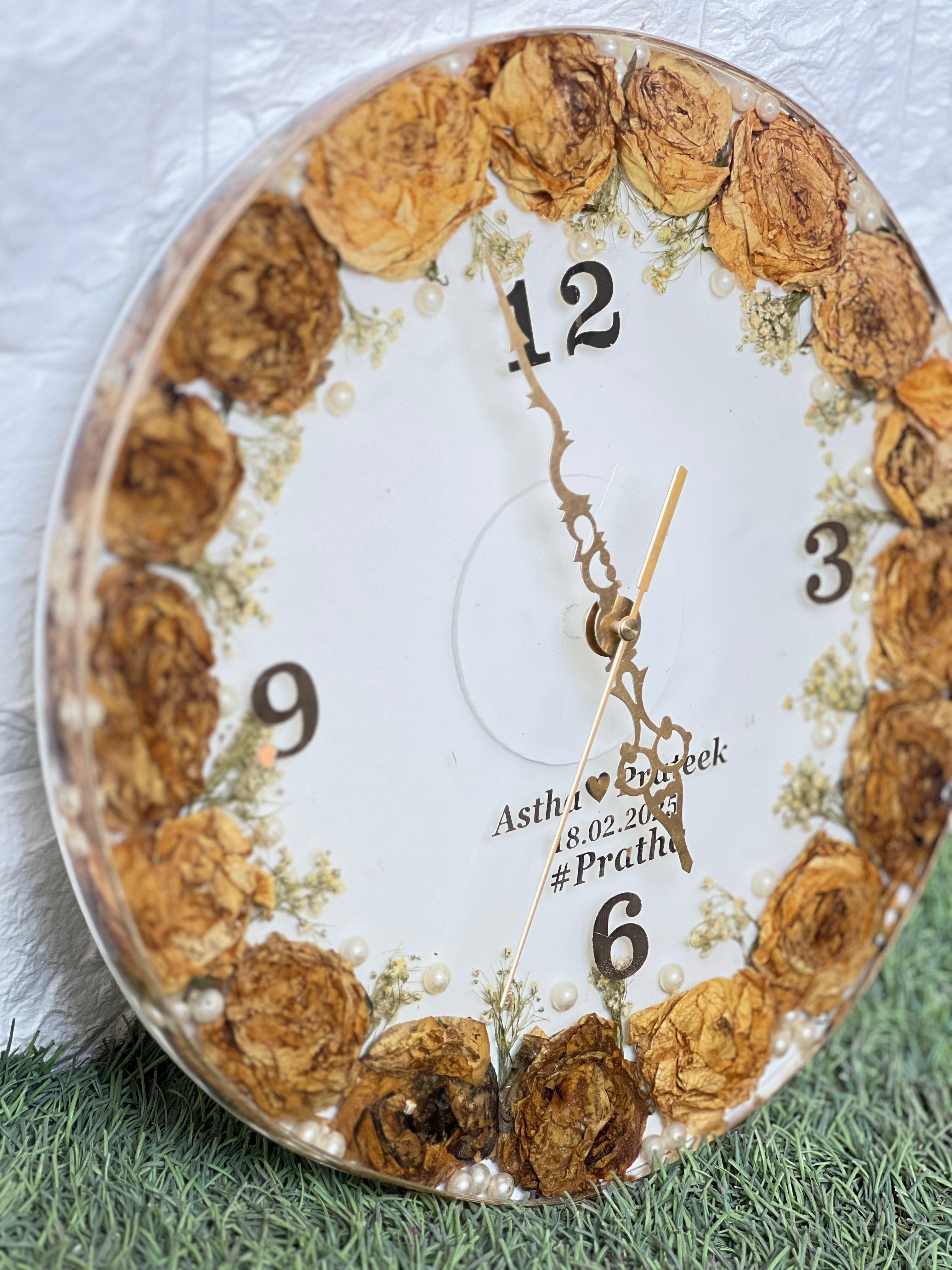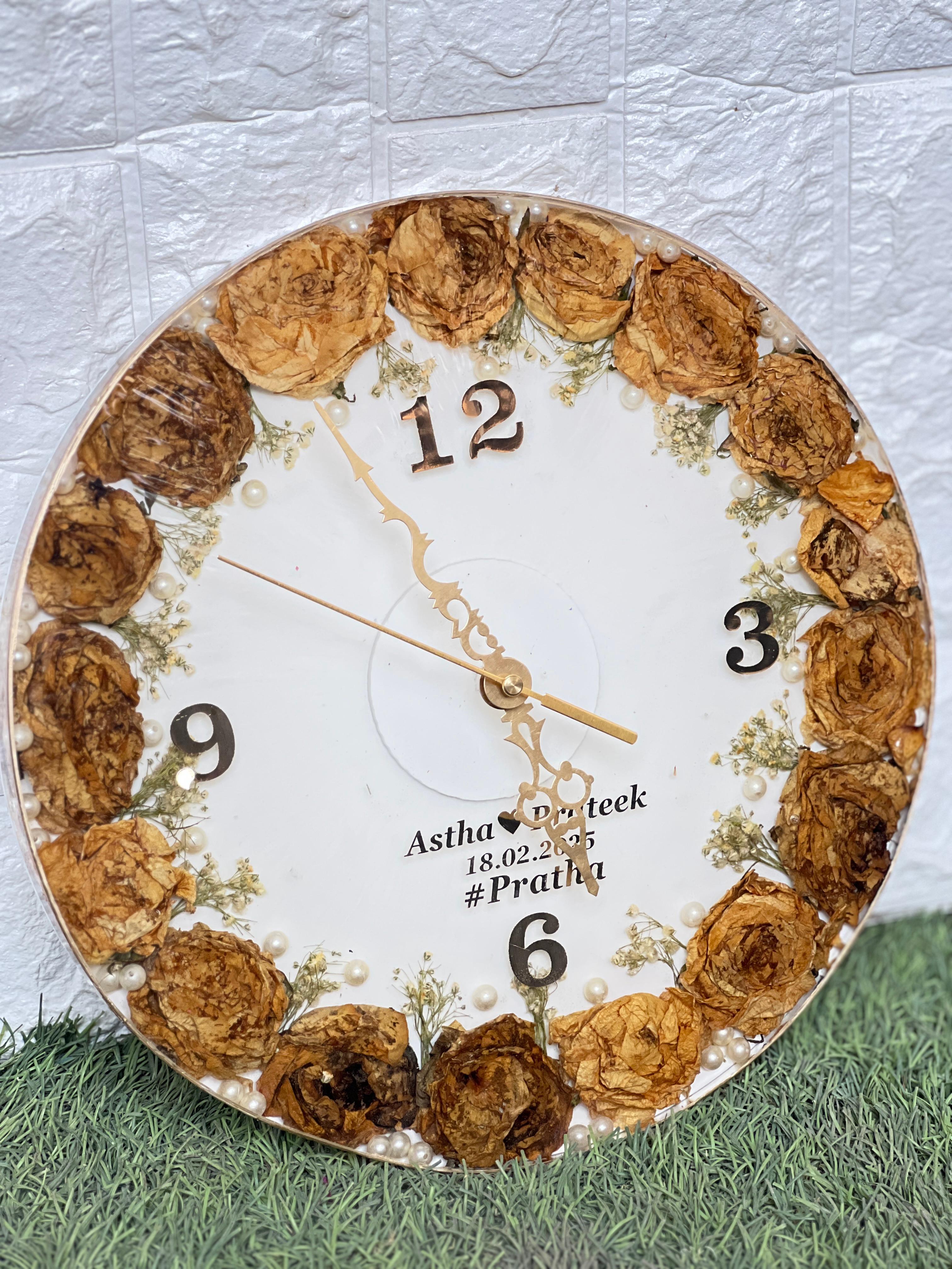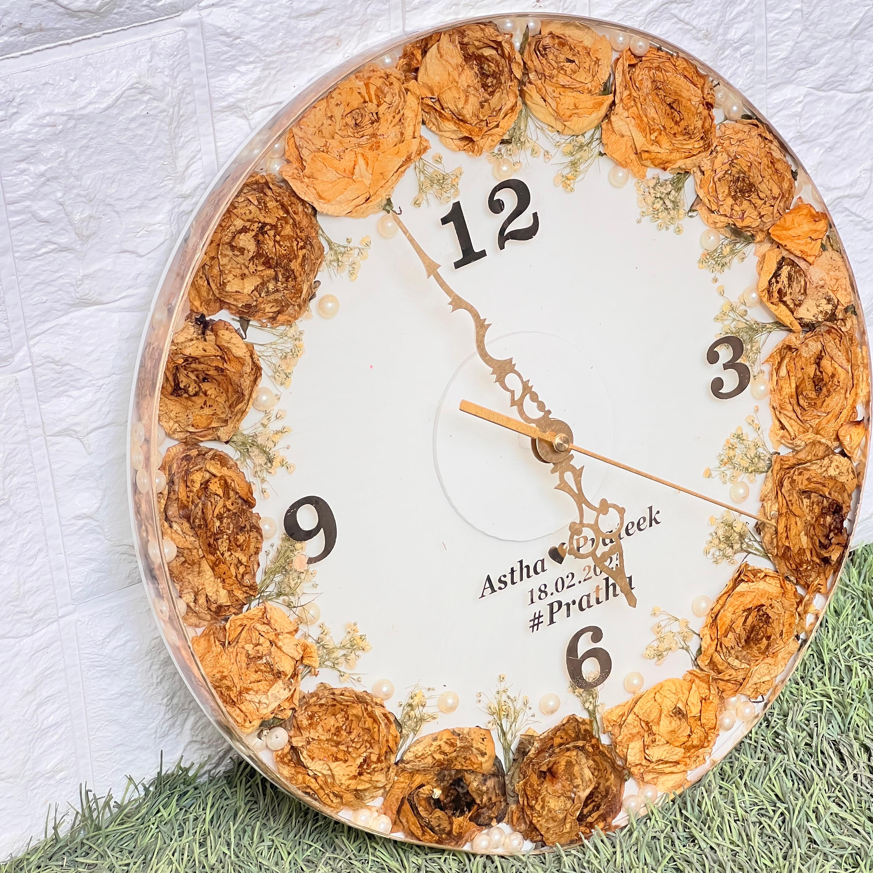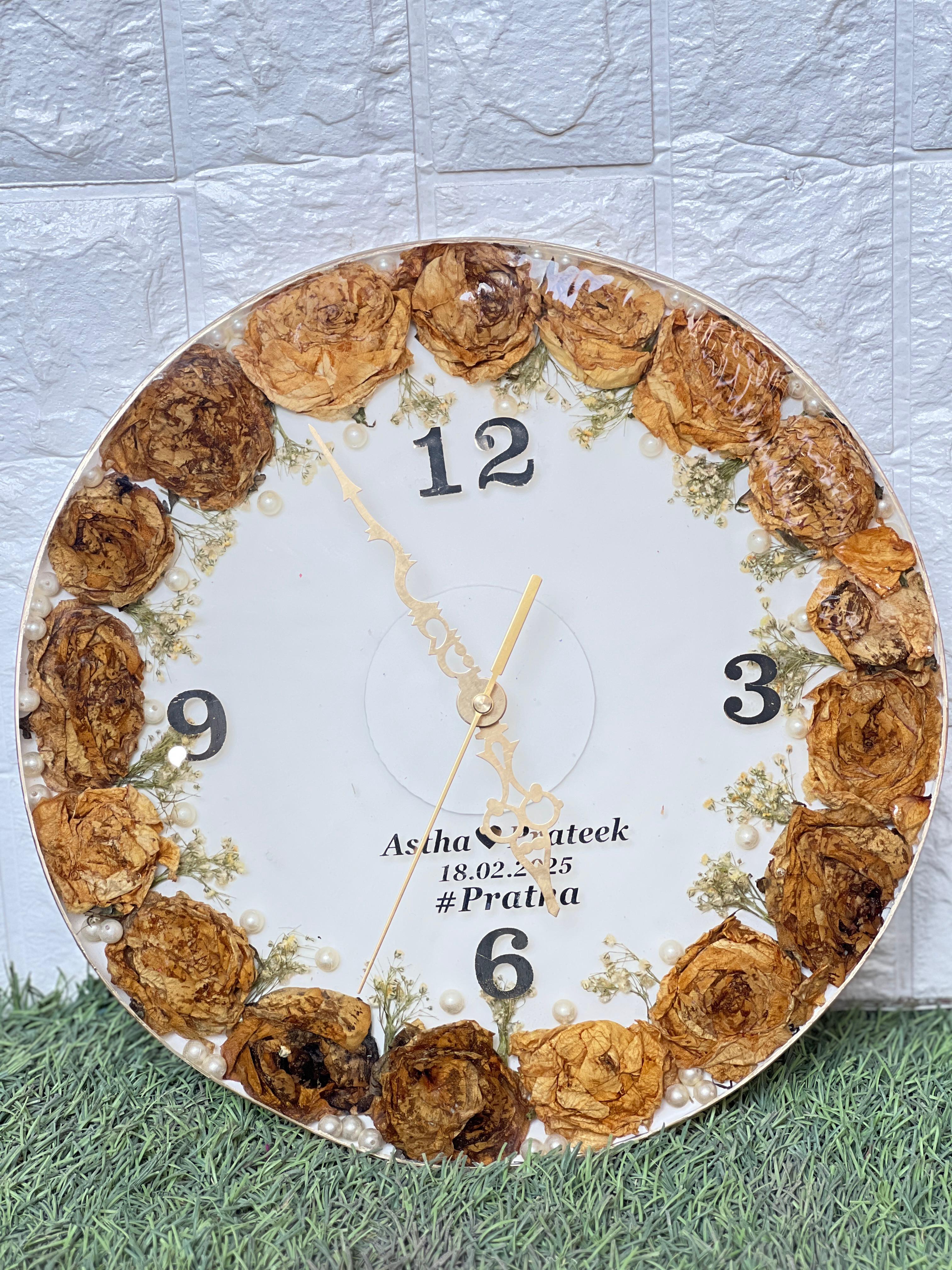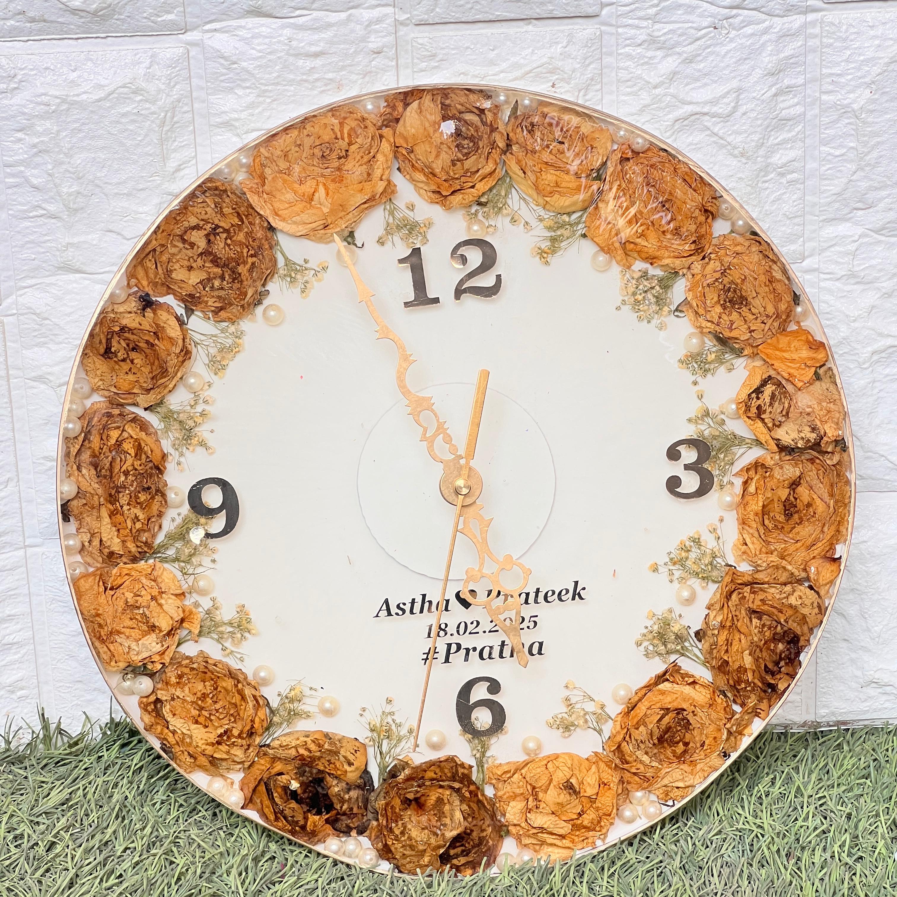 Resin 12inch round clock (4 roman number & name date) Varmala Preservation