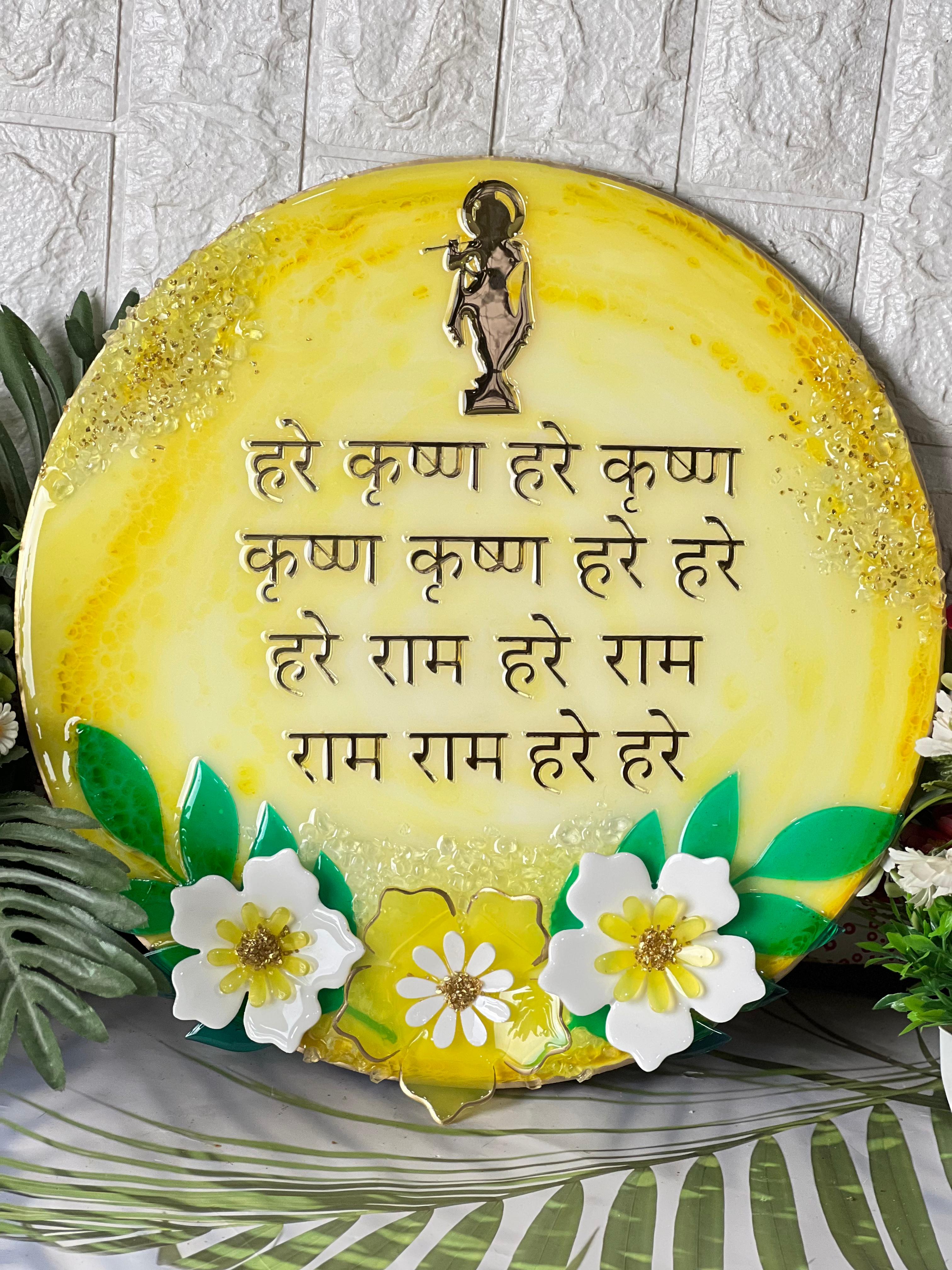 Resin 17inch Round Hare Krishna Mantra frame with 3d Flowers