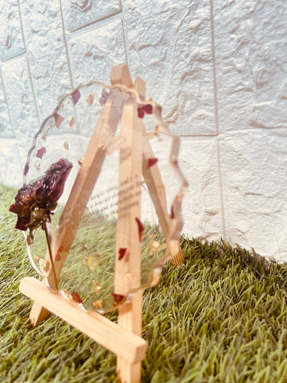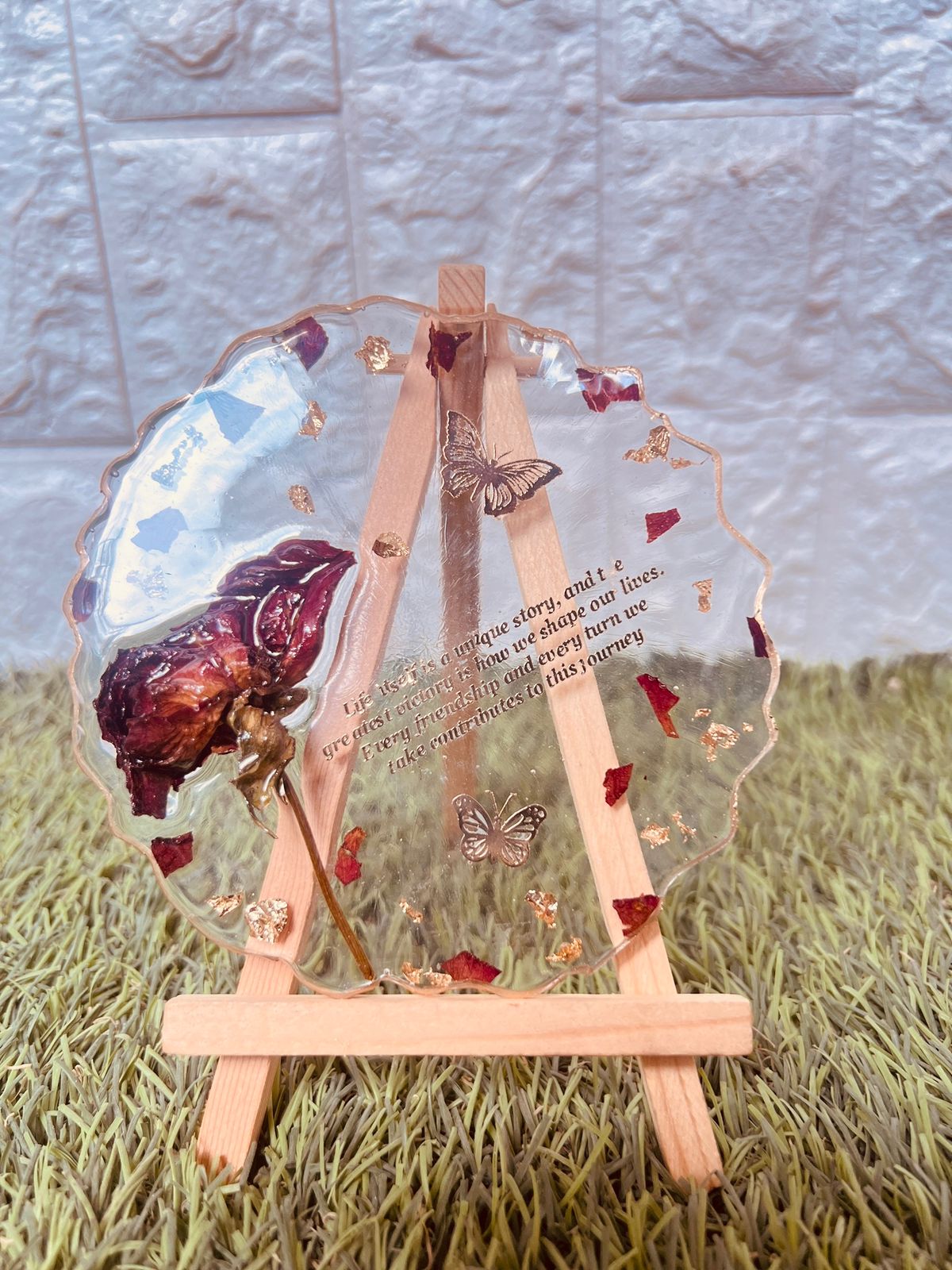 Resin 5inch Round curve shape with Single Rose & Content Flower Preservation
