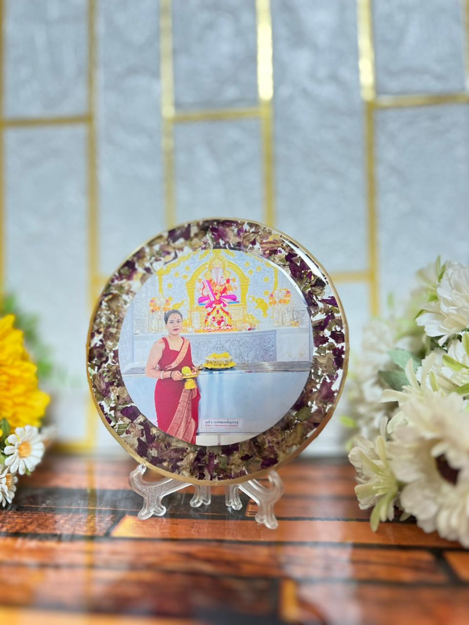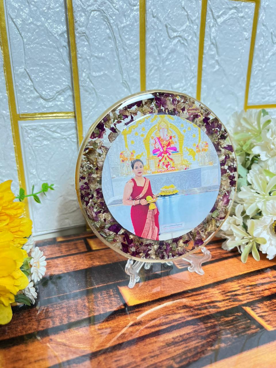 Resin 5inch Round God Flowers with Photo Flowers Preservatiopn