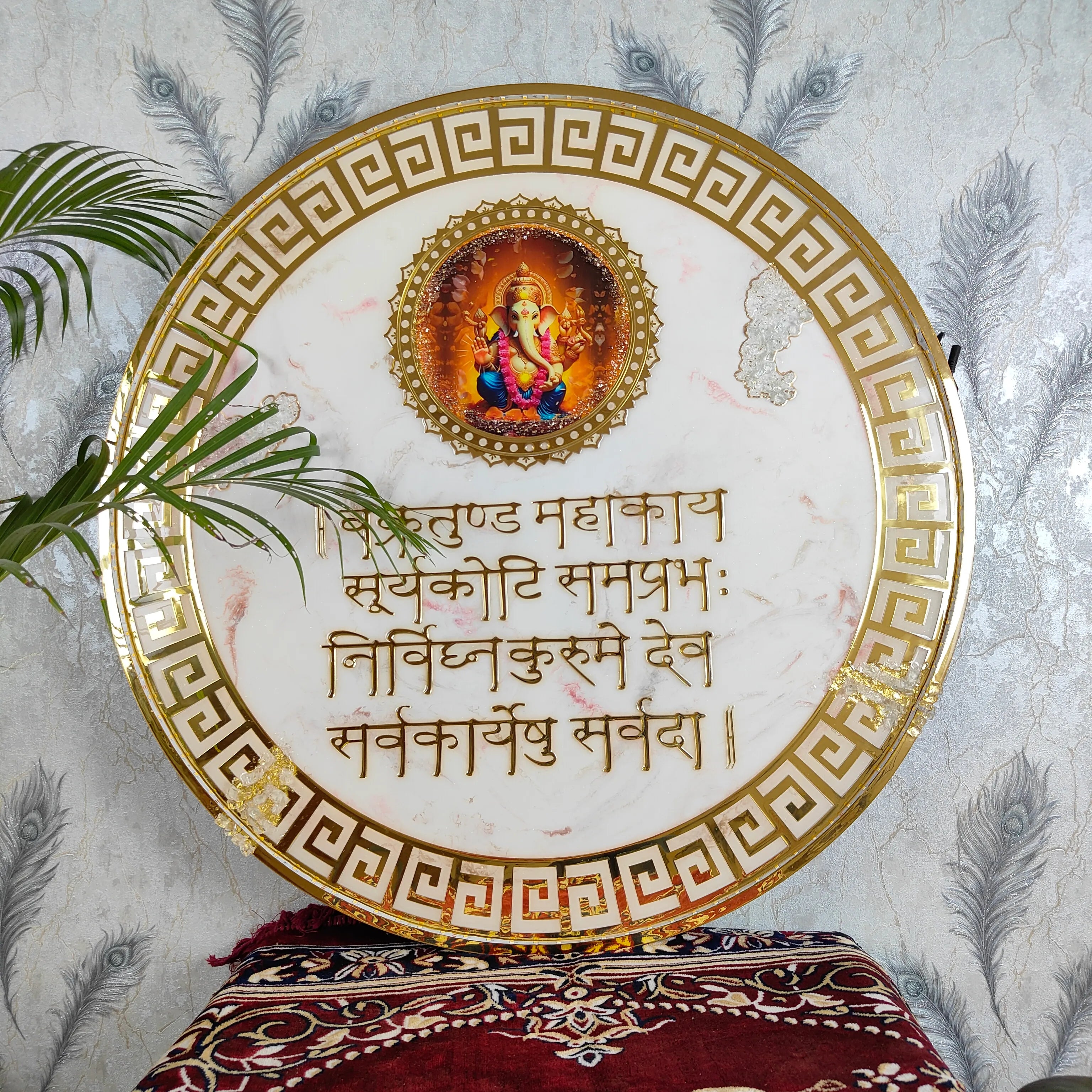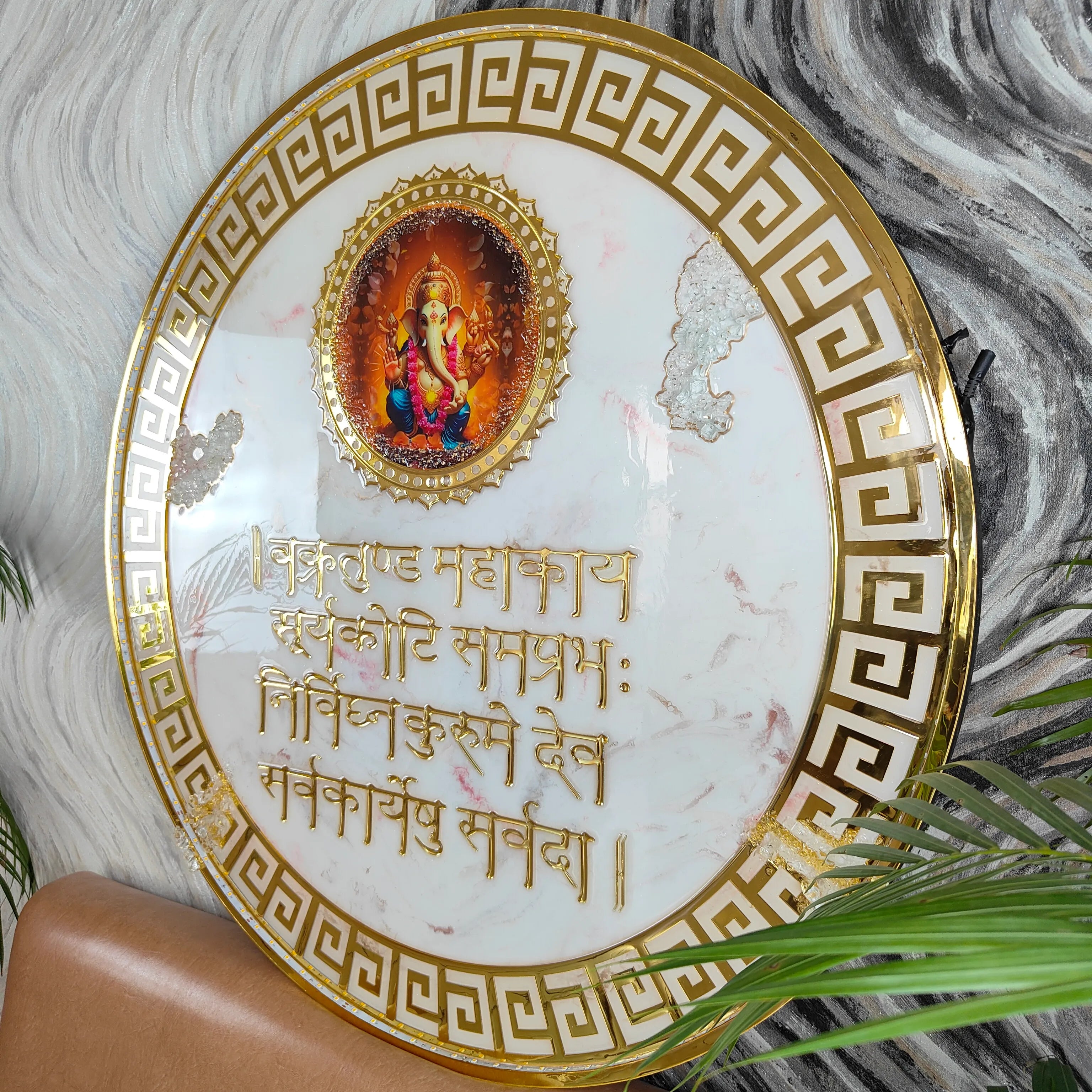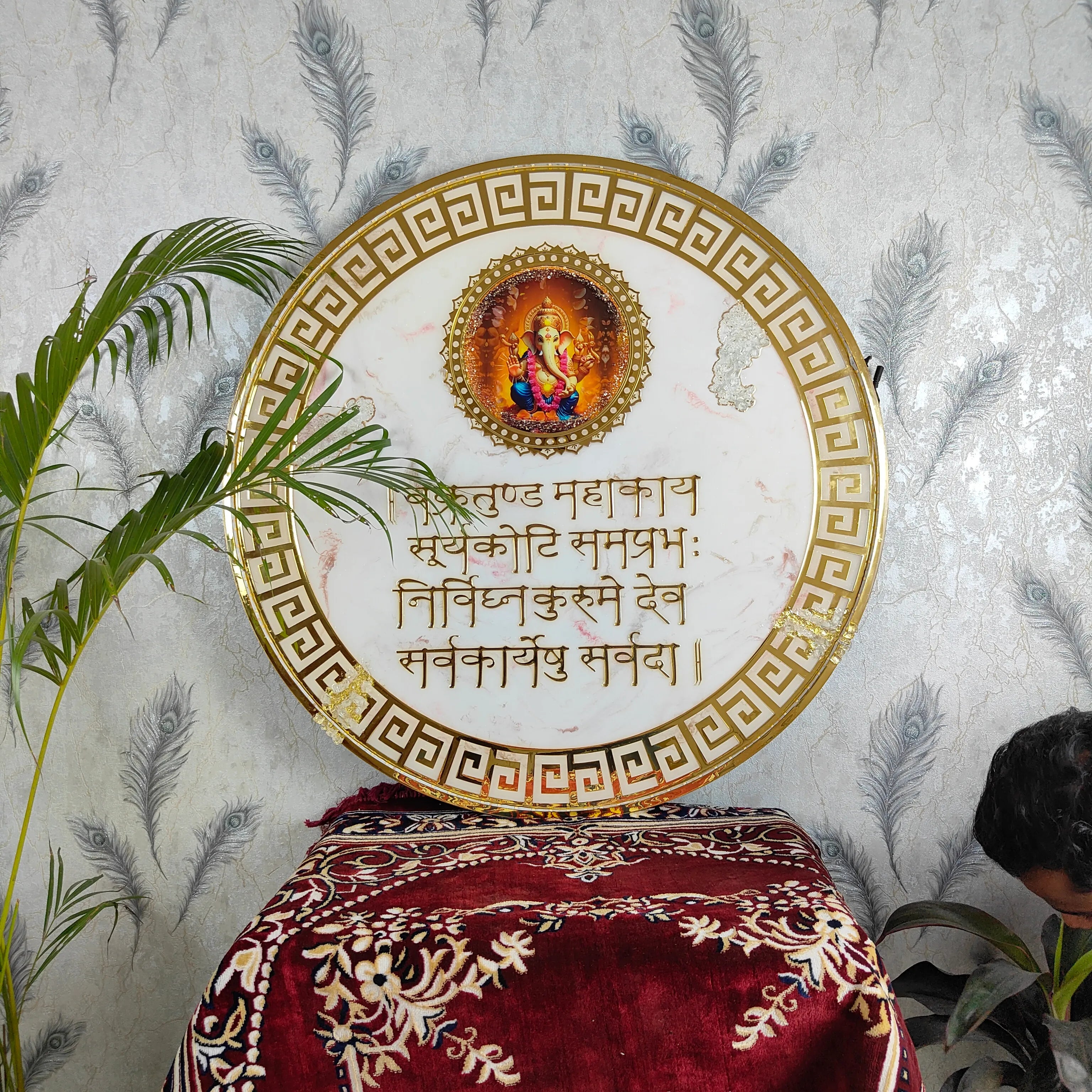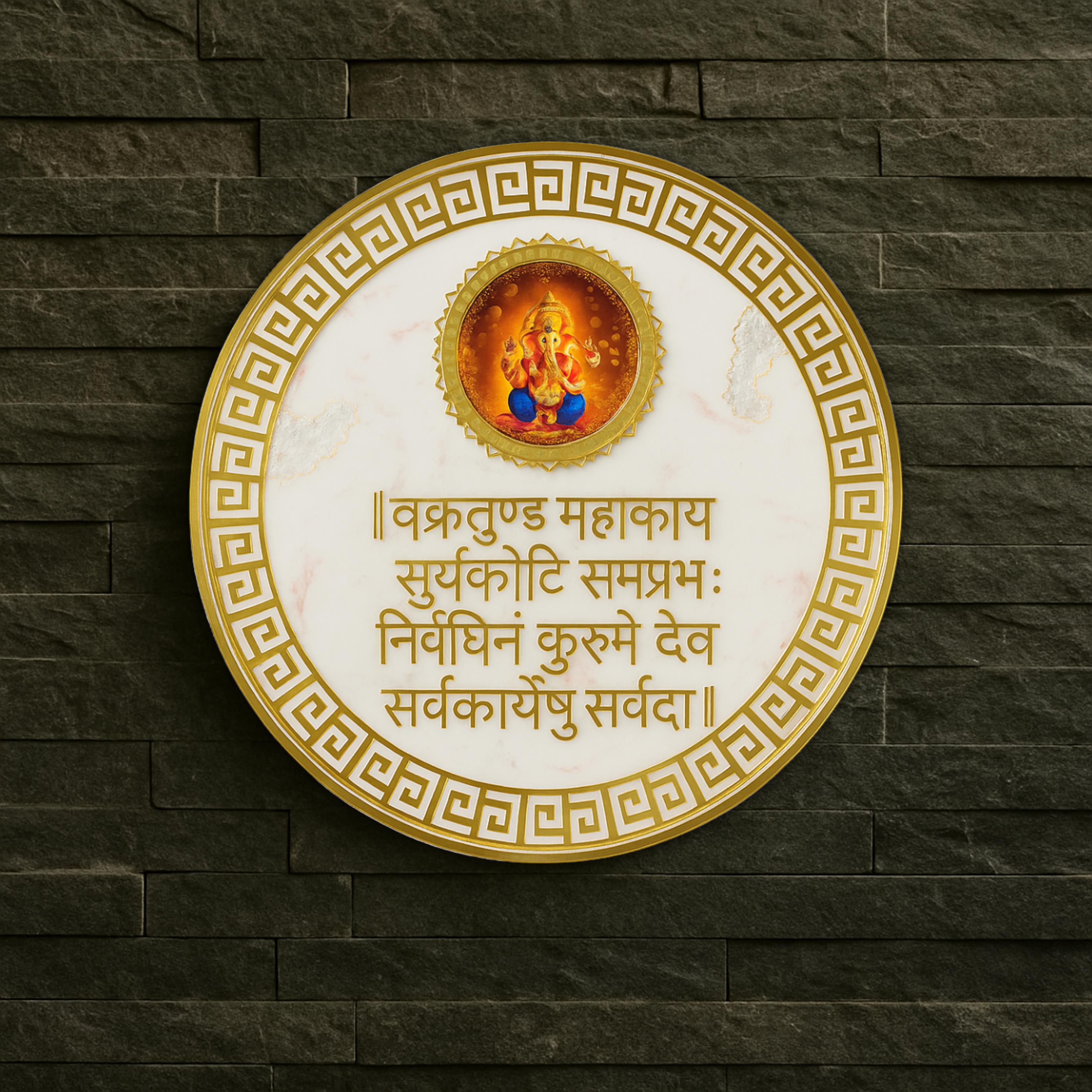 Perfect for Hindu temples, prayer rooms, or as a decorative piece in your living space, this customised frame is ideal for new home renovation and new home making. Made with high-quality resin, the epoxy resin mantraplate is durable, easy to clean, and designed to last.