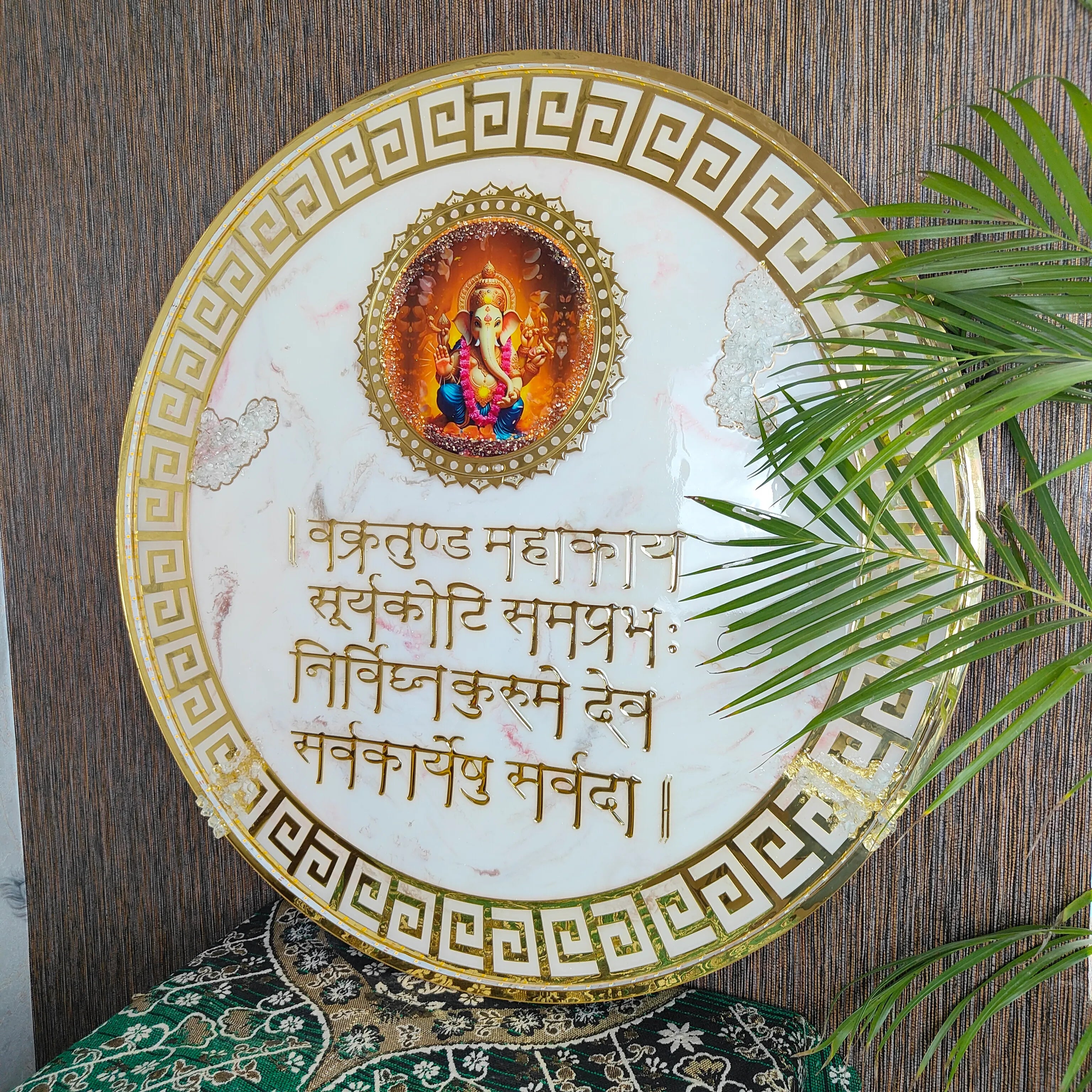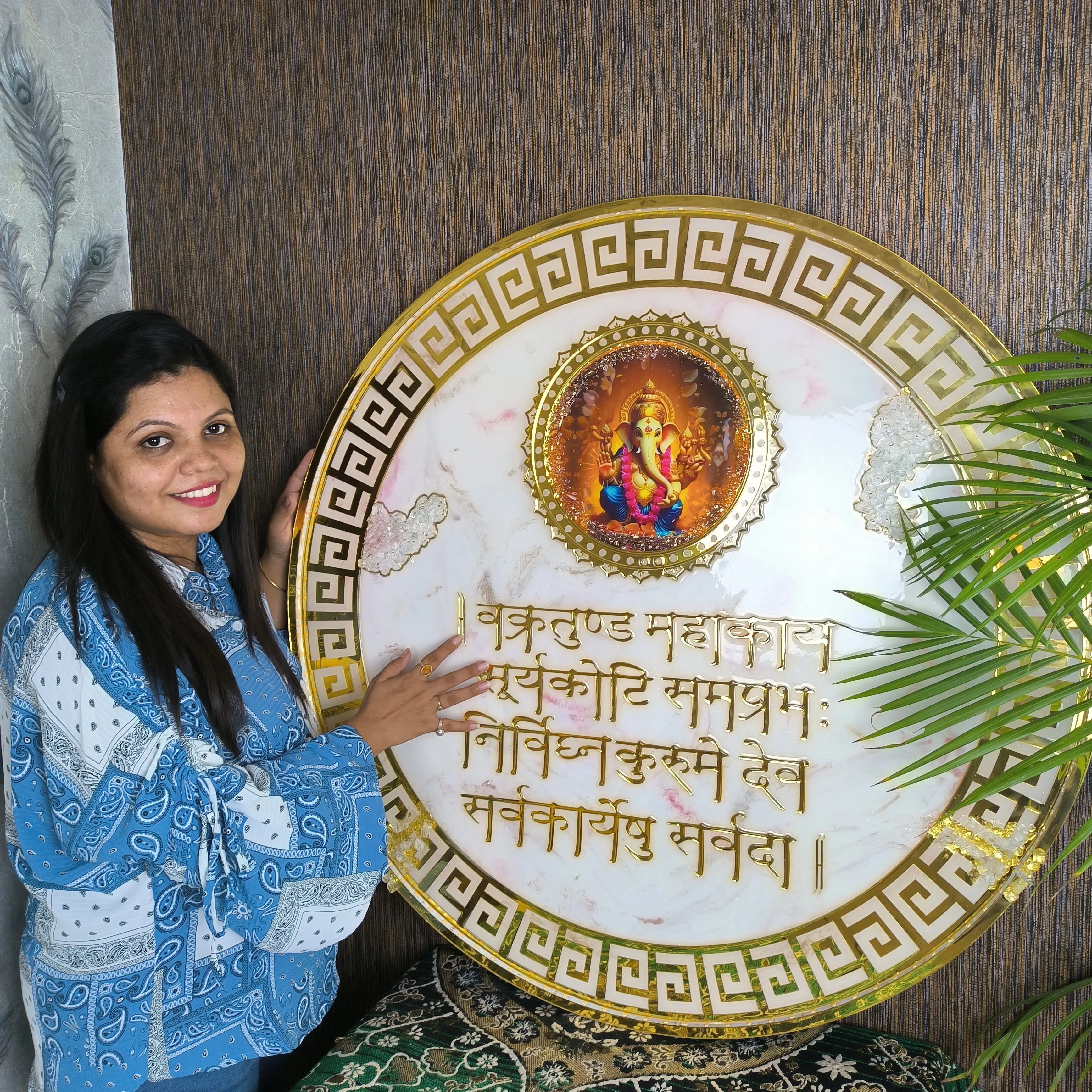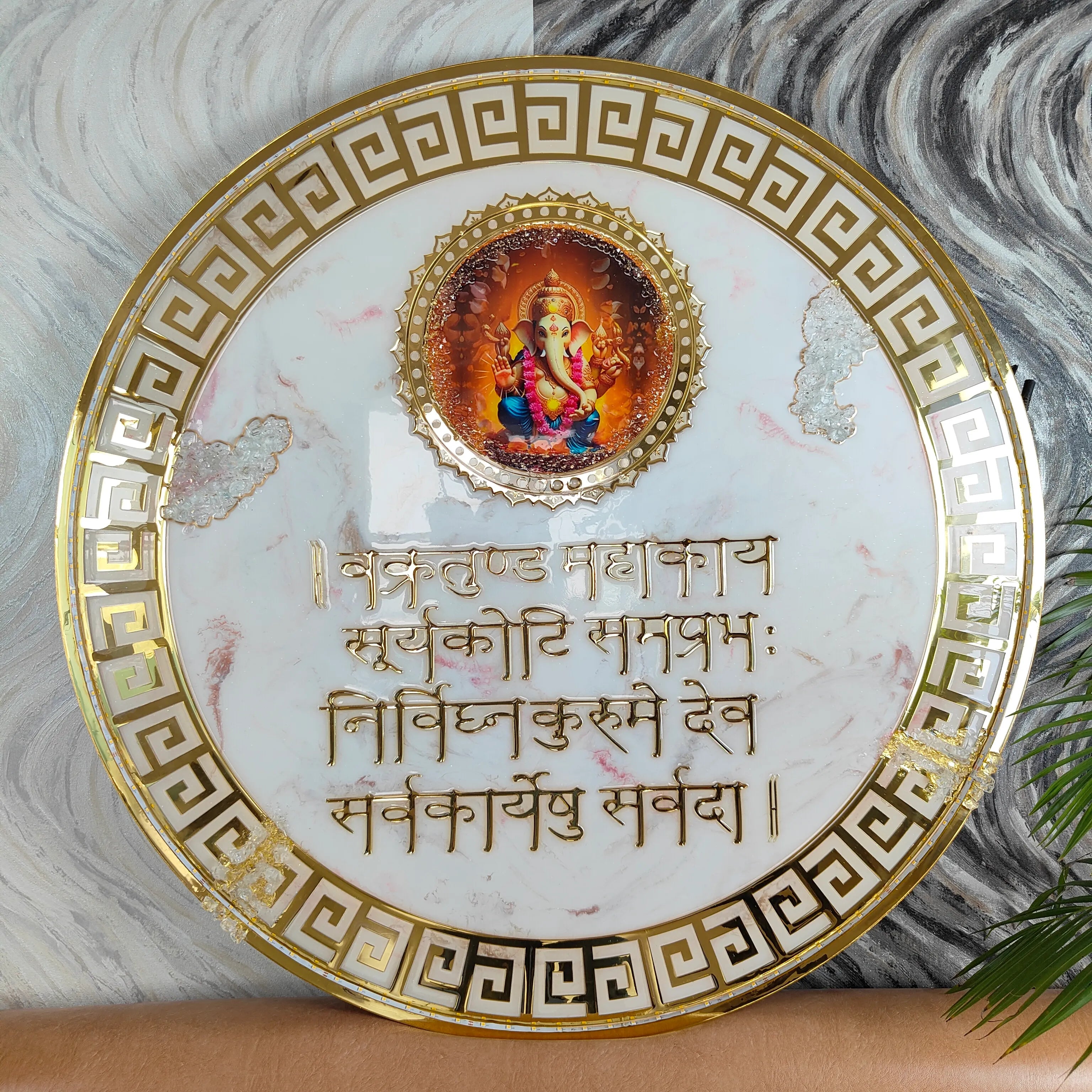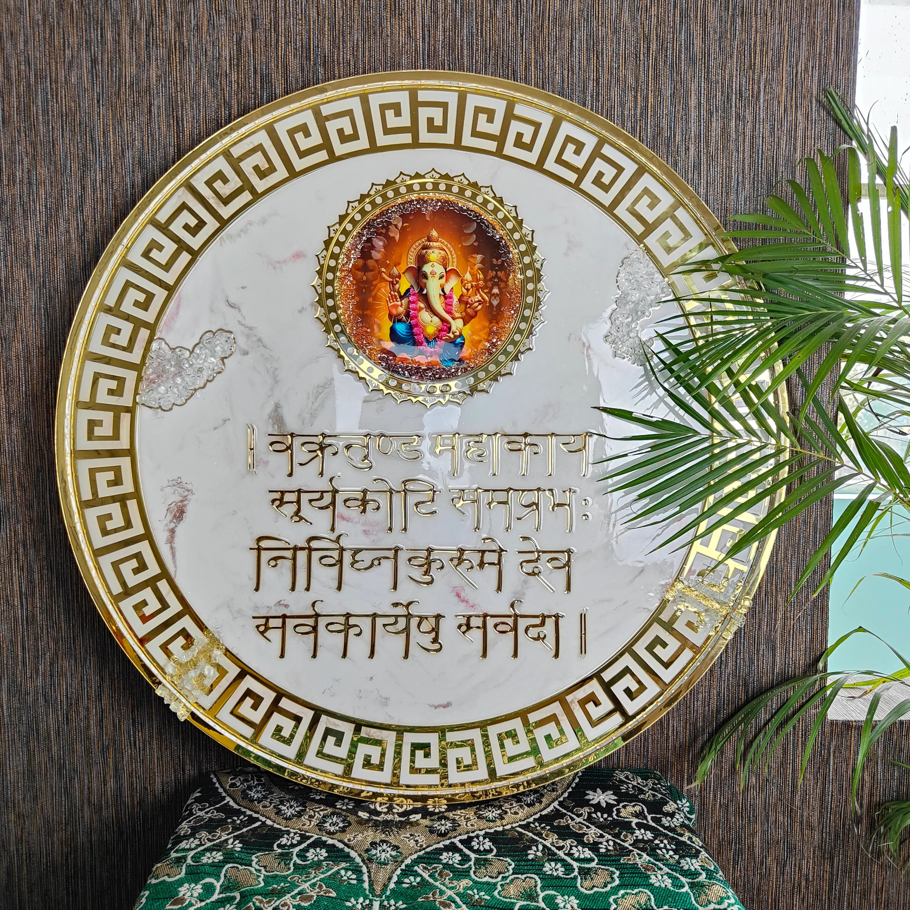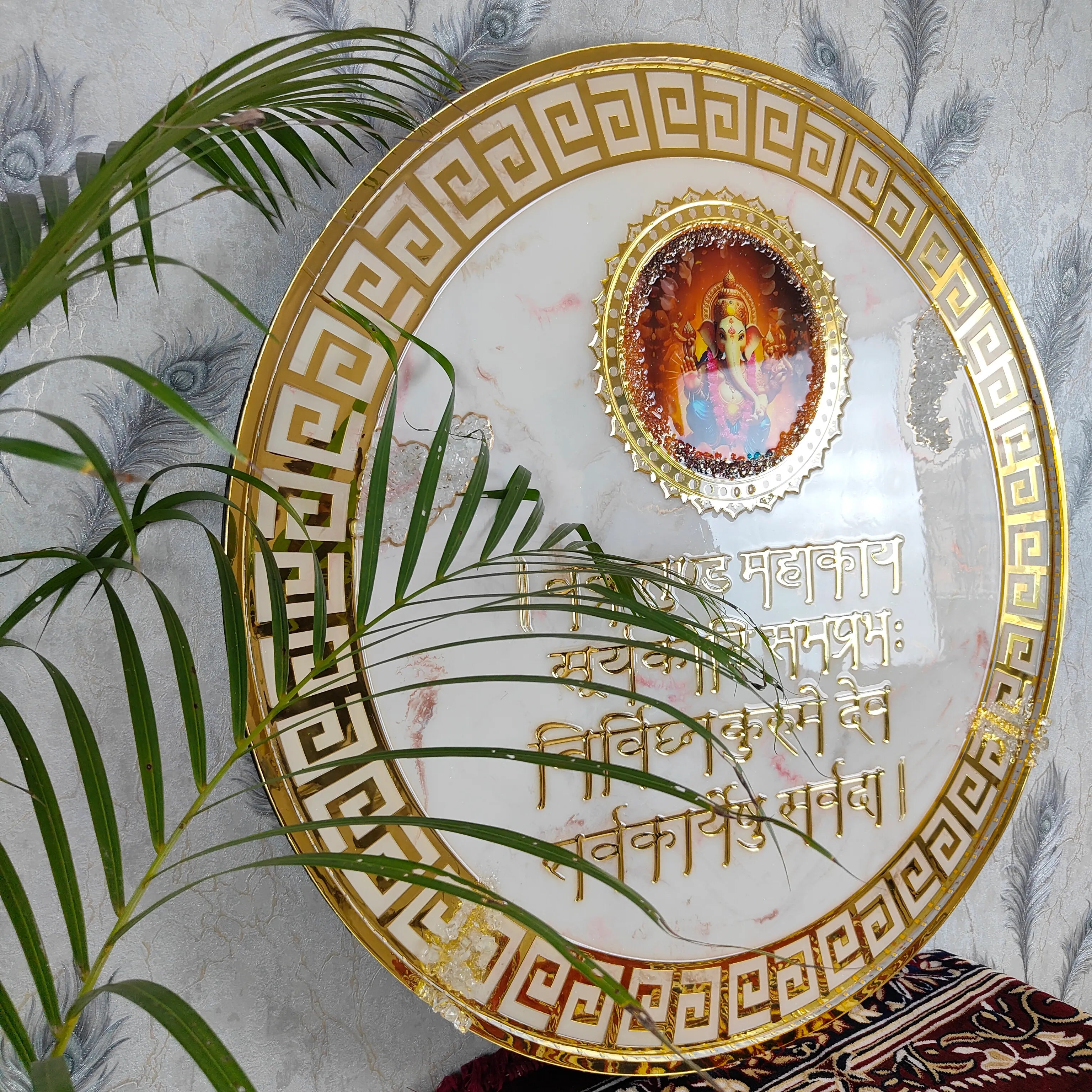 Perfect for Hindu temples, prayer rooms, or as a decorative piece in your living space, this customised frame is ideal for new home renovation and new home making. Made with high-quality resin, the epoxy resin mantraplate is durable, easy to clean, and designed to last.