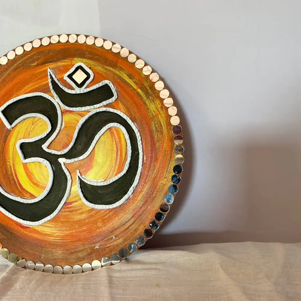 Bring peace and positivity to your space with this luxury handmade resin mantra frame featuring the sacred Om symbol. Made from high-quality epoxy resin, it has a beautiful orange-yellow swirl background and a striking black Om mantra in the center. The shiny mirror border adds extra beauty, making it perfect for your living room, office desk, or temple décor.