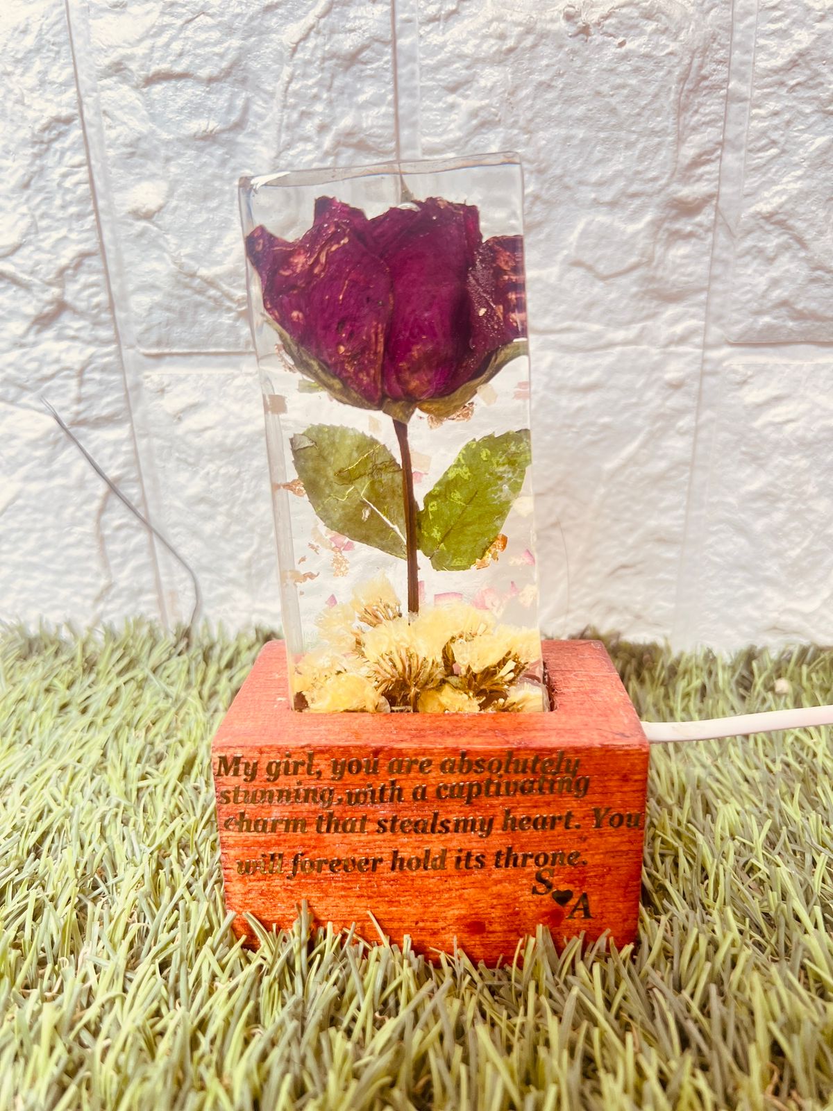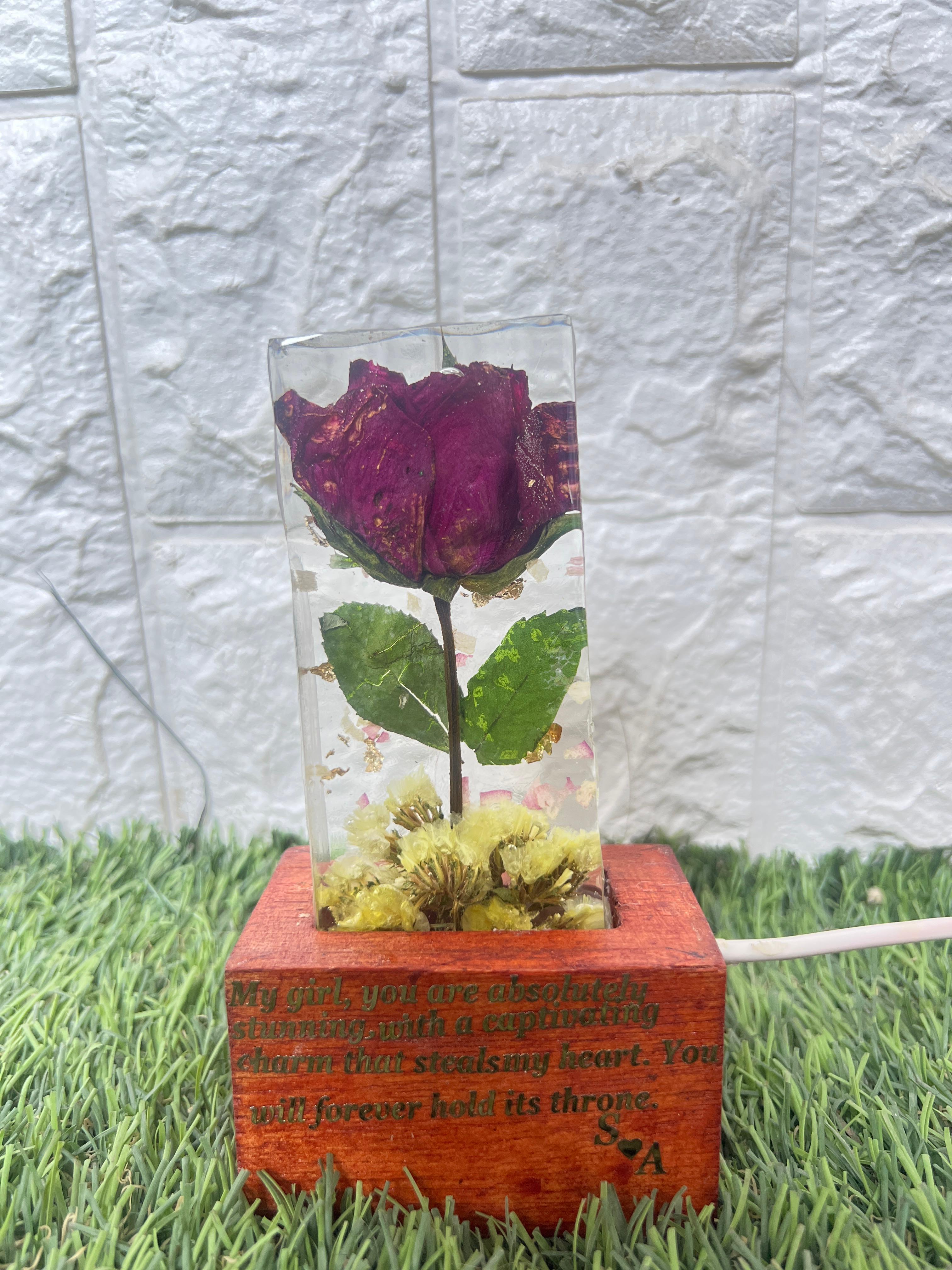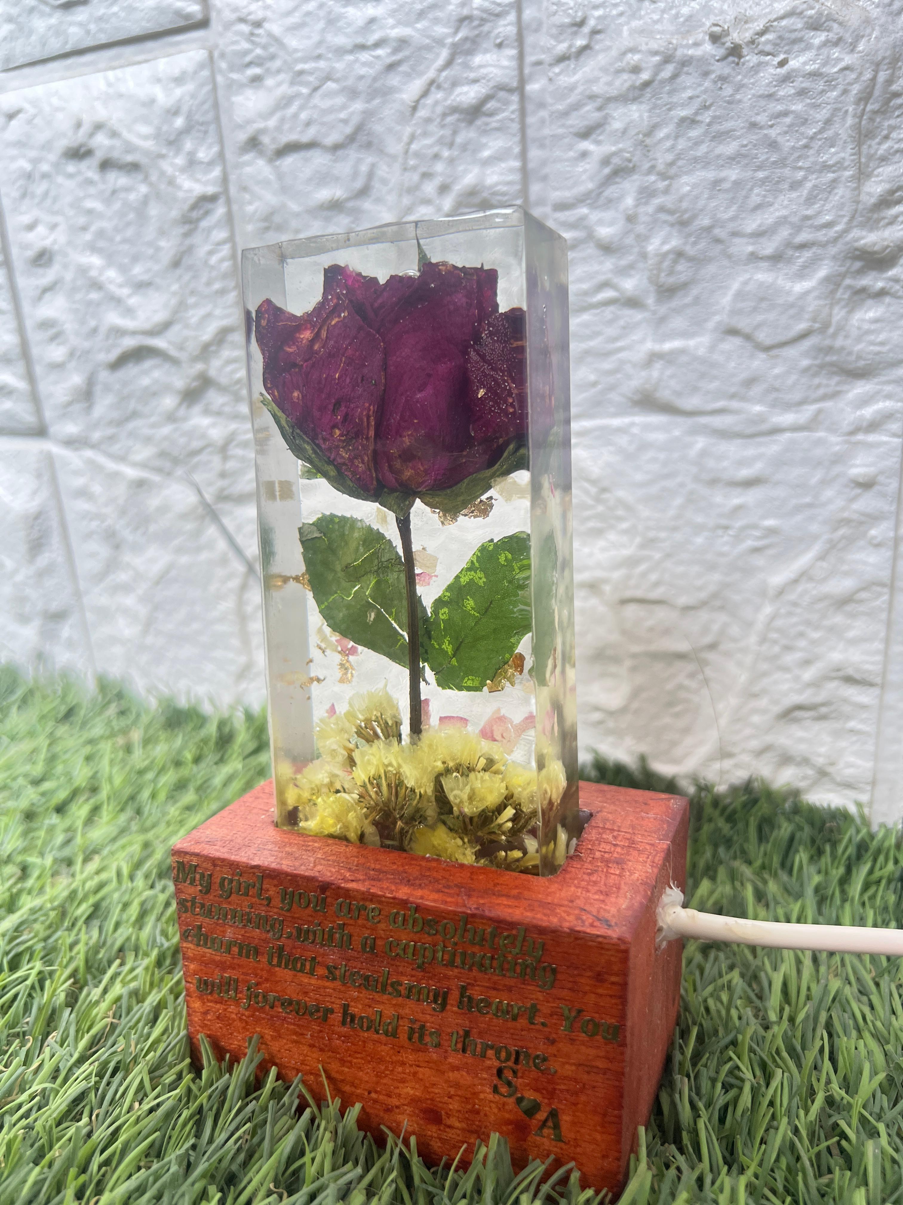 Resin Single rose block with LED lamp with Phone cover Combo set with content Flowers Preservation