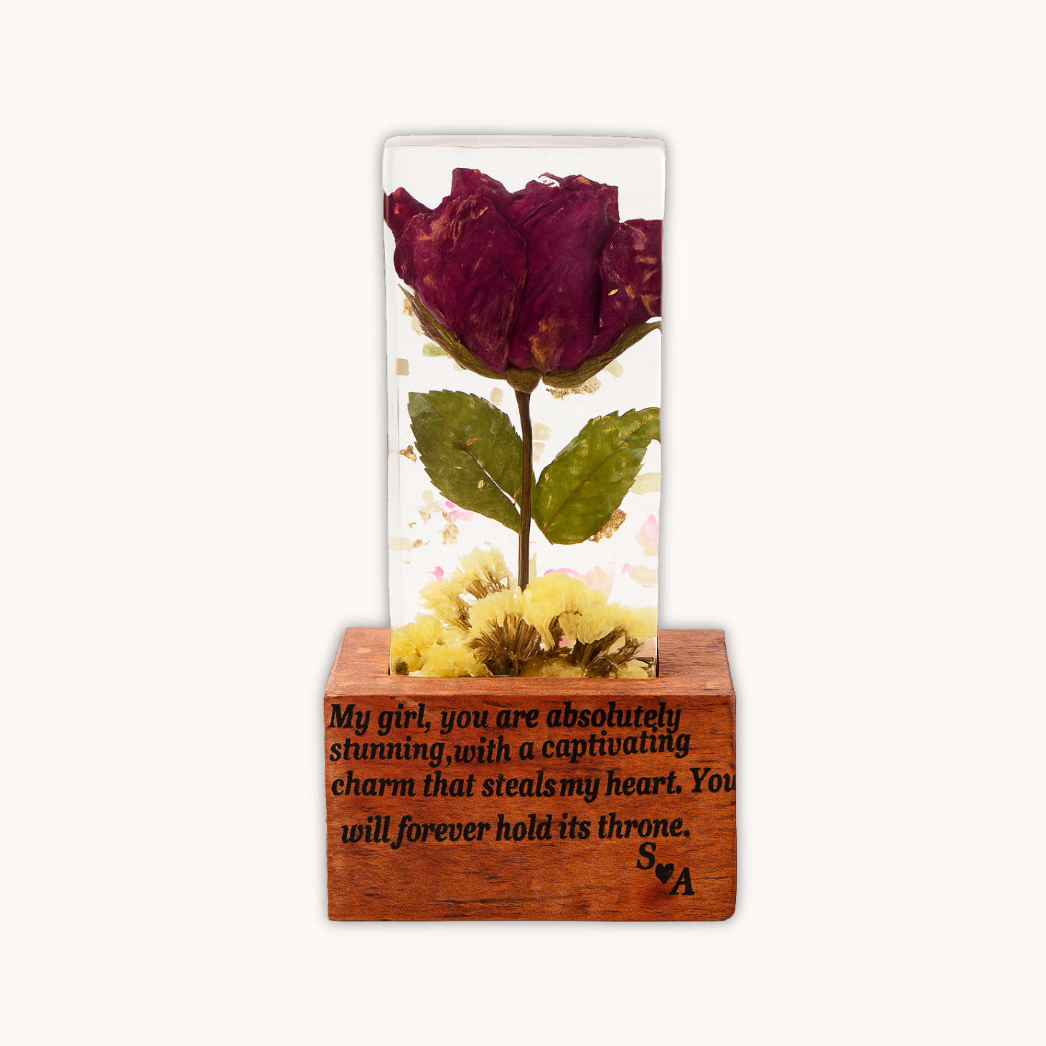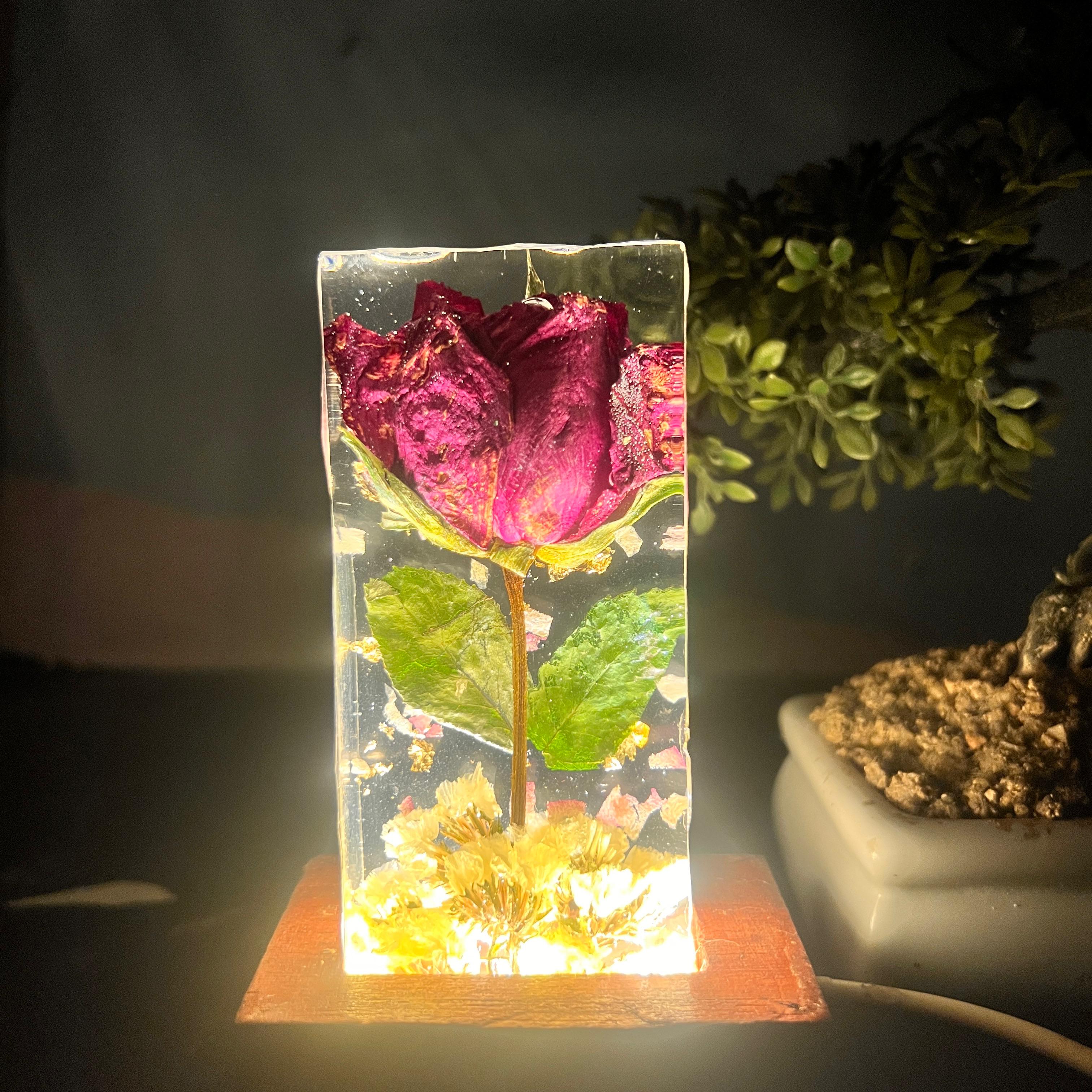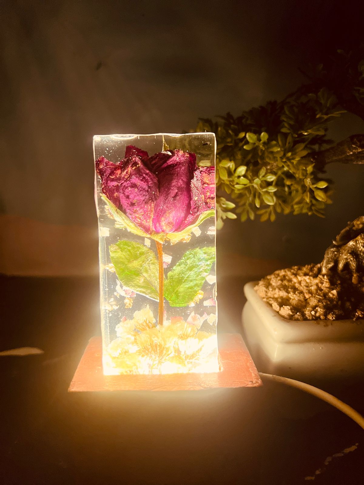 Resin Single rose block with LED lamp with Phone cover Combo set with content Flowers Preservation