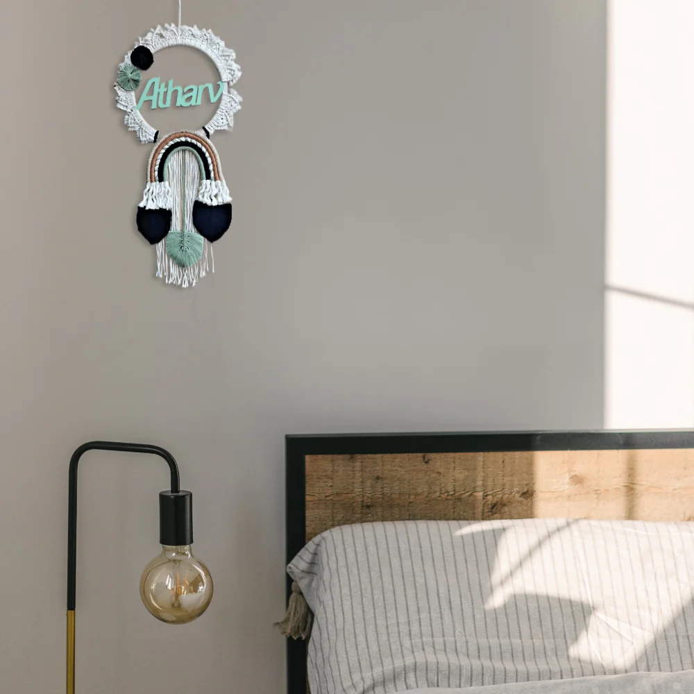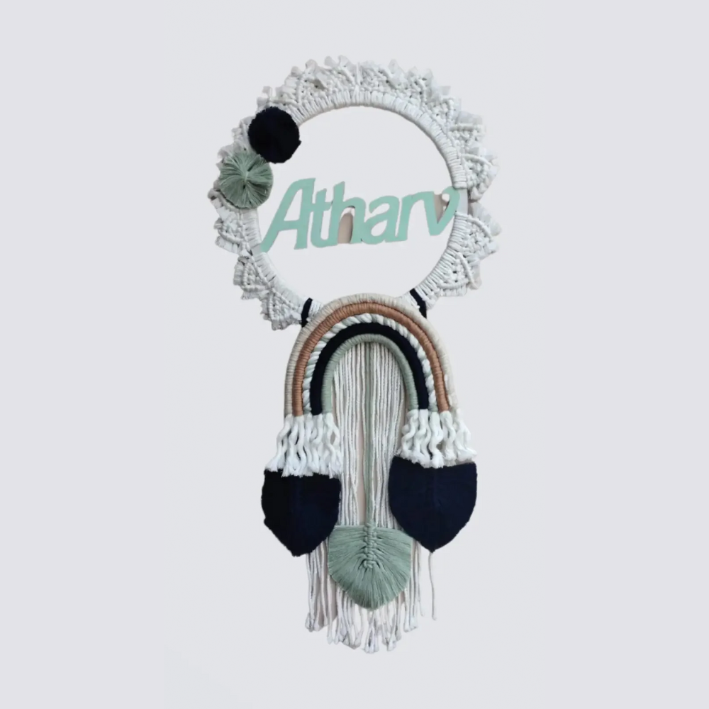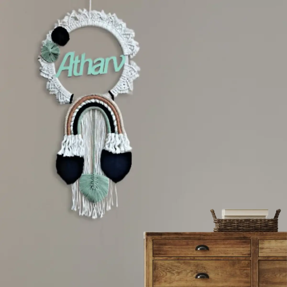 One of the standout features of this wall hanging is the custom name that can be added to it. This personalization adds a special touch to the piece and makes it a wonderful gift for a loved one or a perfect addition to your own home. adding a beautiful and personalized element to the piece.