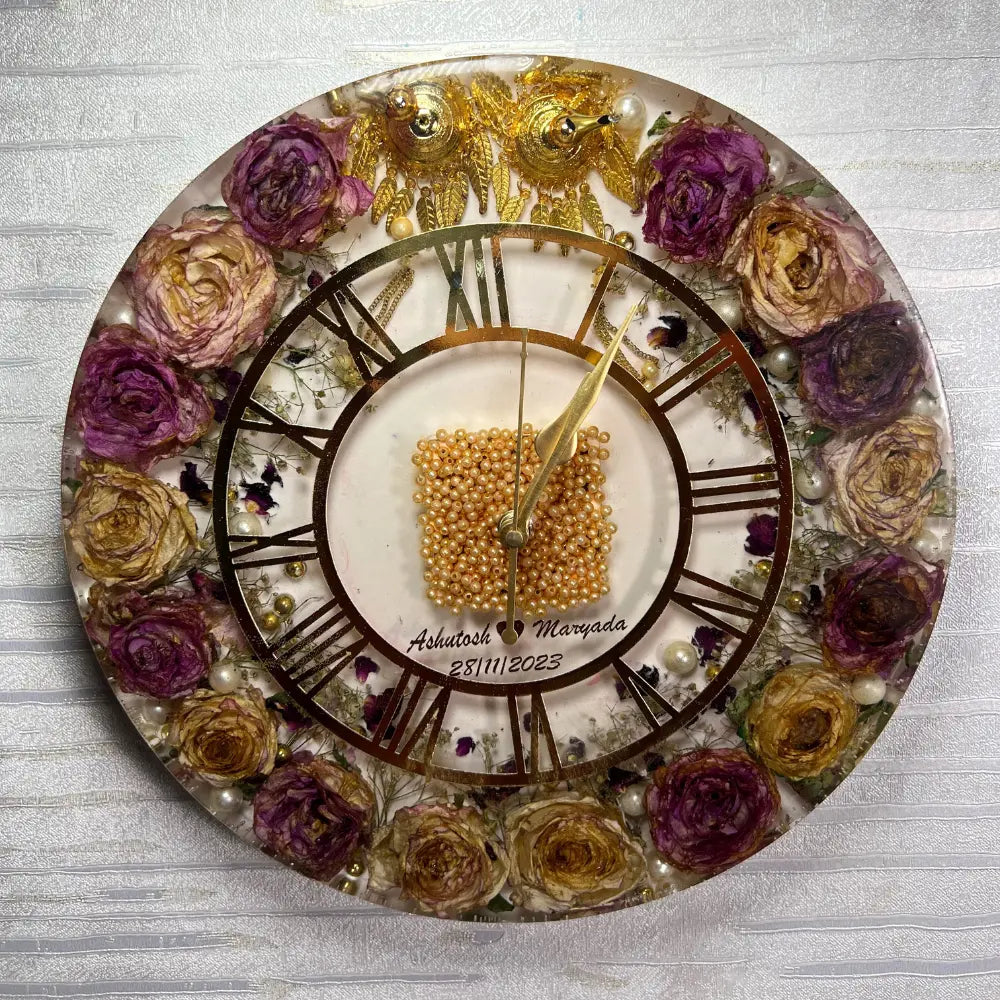 Wedding Varmala Flower & Kaleere Preserved Resin Wall Clock (12-Inches)